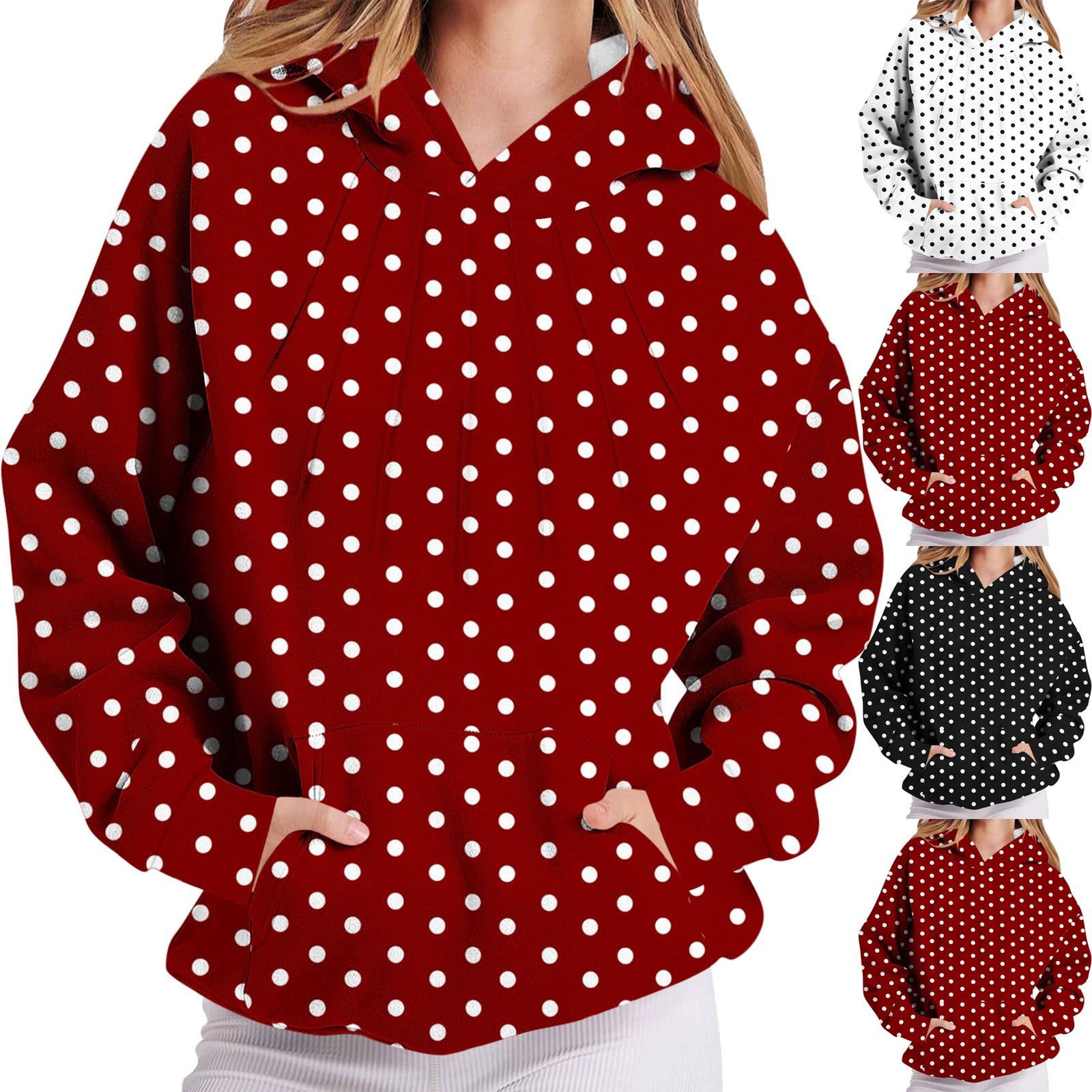Dames Geplisseerd Polkadot Lange Mouw Hoodie cm wit