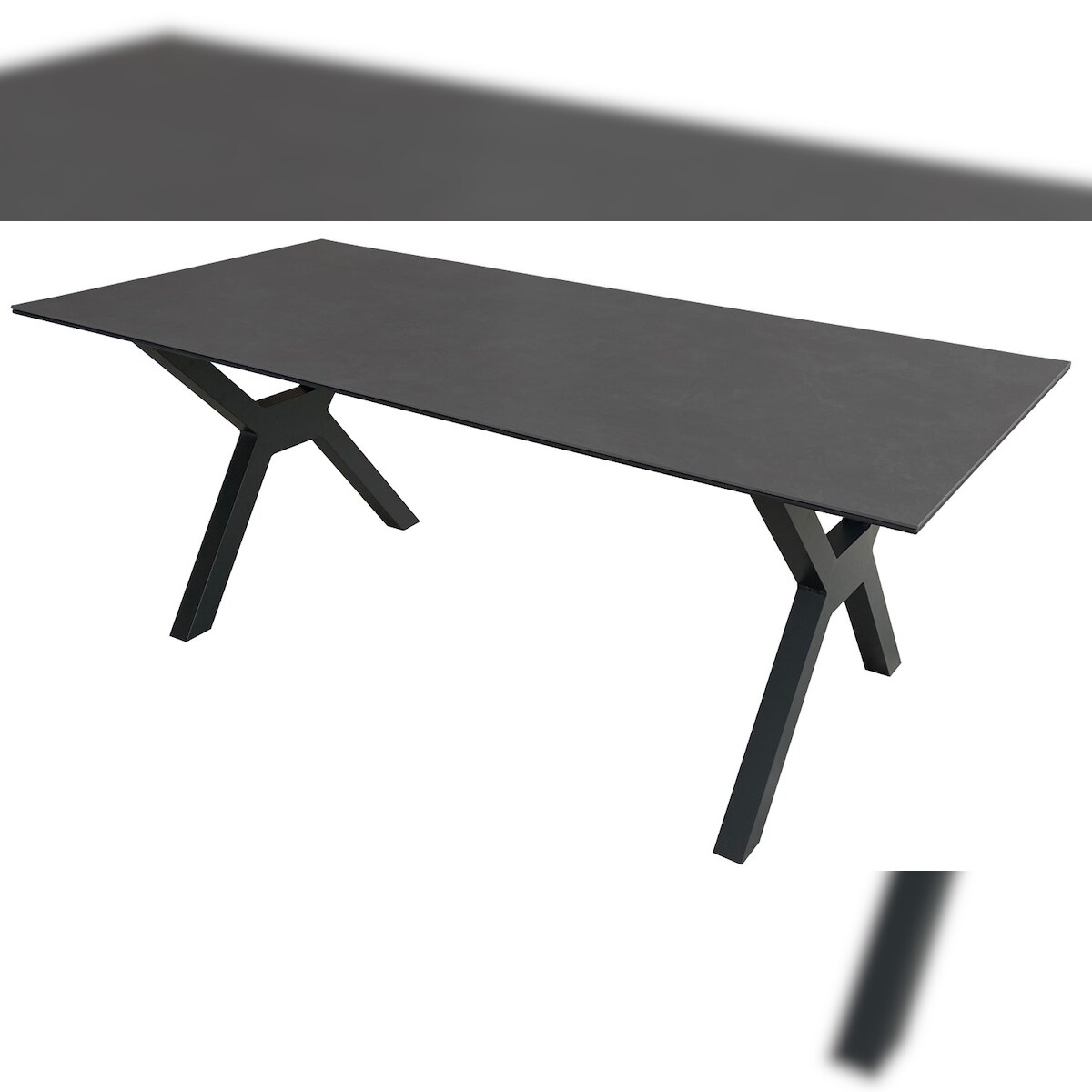 Mr. Deko Tisch Granada - 200 x 90 cm - gesinterter Stein dunkelgrau - Gestell X-Form