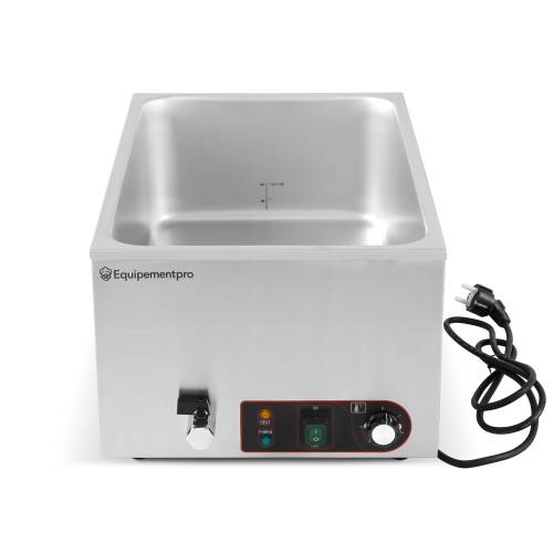 Equipementpro Professionelles Bain Marie aus Edelstahl, 21 l, Thermostat 45–90 °C, Ablasshahn, kompatibel mit GN-Behältern
