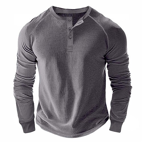 Per uomo Maglietta Waffle Maglietta Manica Lunga Tinta unica Testurizzato Tradizionale / Vintage Casual Patchwork Henley Casuale Casa All'aperto Autunno Autunno Inverno Tutte le stagioni Verde