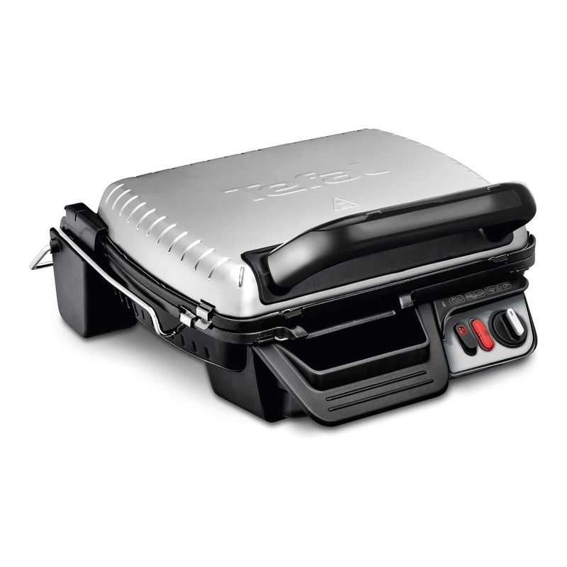 Tefal 3-in-1 Kontaktgrill, mit Überbackfunktion, doppelte Grillfläche als Tischgrill/BBQ, Sandwich, Steak, Panini, einstellbares Thermostat, Antihaftbeschichtung, Grau, GC3060