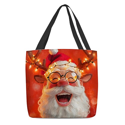 borsa tote natalizia da donna – design di Babbo Natale con albero di Natale festivo e fiocchi di neve, divertente e stravagante, regalo perfetto per le feste di Natale, le festività invernali e lo shopping