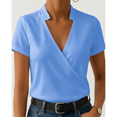 Per donna Maglietta Semplice Casual Manica Corta Scollo a V Top Regolari Quotidiano Uscire Bianco Blu Viola Verde Estate