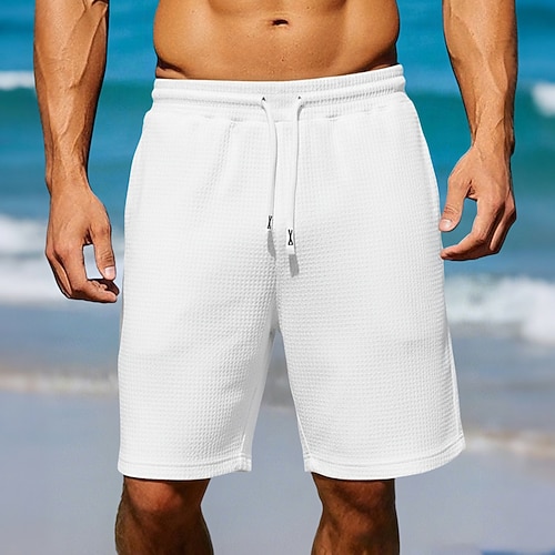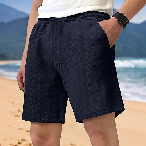 Per uomo Shorts Pantaloncini Estivi Shorts da Spiaggia Maglia a trecce Pantaloncini strutturati Jacquard Coulisse Elastico in vita Tinta unica Comodità Lunghezza al ginocchio Quotidiano All'aperto