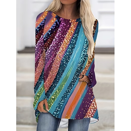 Per donna Maglietta Grafico Geometrico Astratto Vintage Elegante Classico Manica Lunga Girocollo Top Regolari Quotidiano Stampato Blu Primavera Autunno