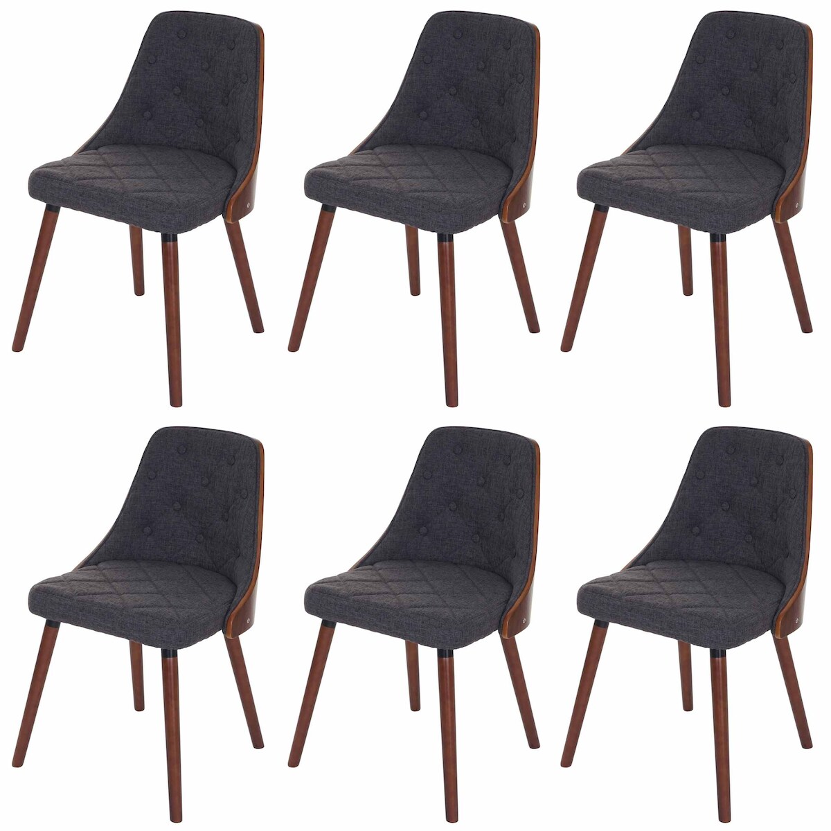Mendler 6er-Set Esszimmerstuhl HWC-A75, Besucherstuhl Küchenstuhl, Walnuss-Optik Bugholz ~ Textil grau