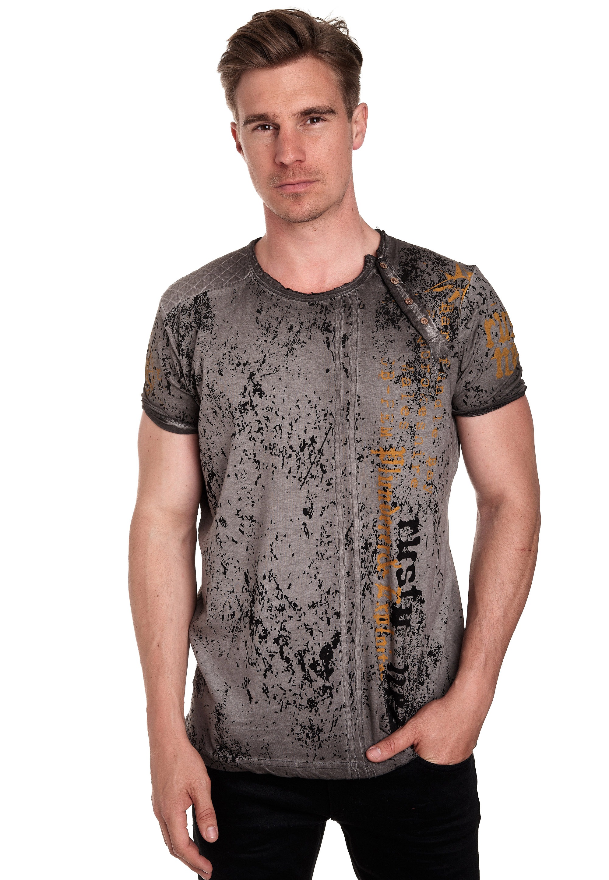 T-Shirt RUSTY NEAL, Herren, Gr. S, grau (anthrazit), 100% Baumwolle, mehrfarbig, Rundhals, Kurzarm, Shirts, mit seitlicher Knopfleiste
