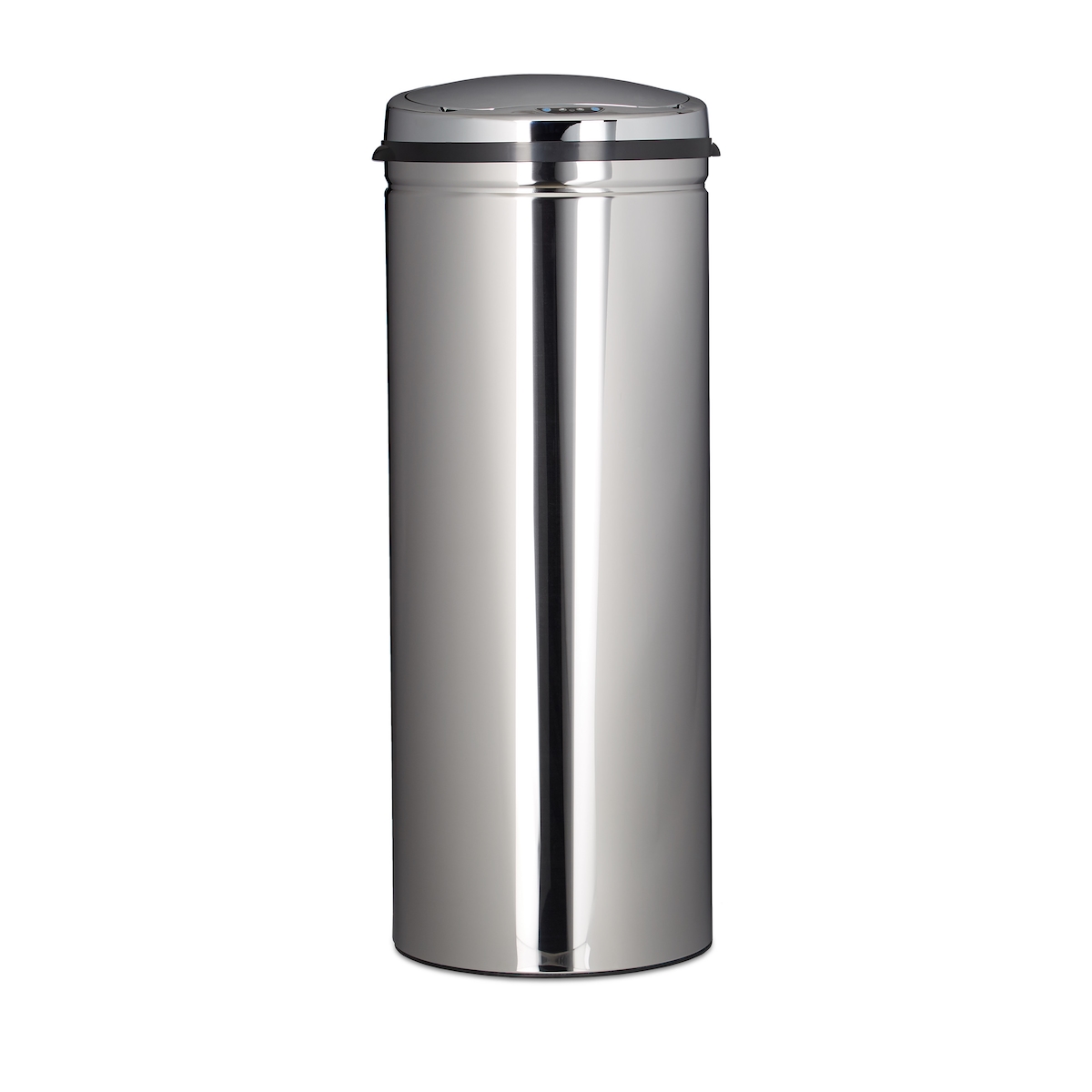 Relaxdays Mülleimer 50 L, mit Sensor, aus Edelstahl, 80 cm hoch, 30 cm Durchmesser, automatischer Deckel, rund, silber
