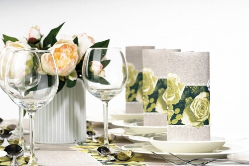 Mank Serviette aus Airlaid,Lovely Roses in Gelb, 40 x 40 cm, 50 Stück - Floral Rosen Blumen