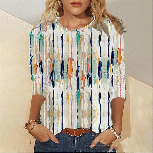Per donna Maglietta Blocco di colori Casual Manica 3/4 Girocollo Top Regolari Quotidiano Uscire Weekend Beige Estate