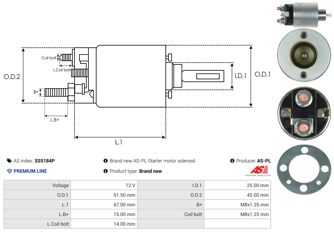 AS-PL Magnetschalter, Starter SS5184P Universal 12V für MITSUBISHI M371XD2071