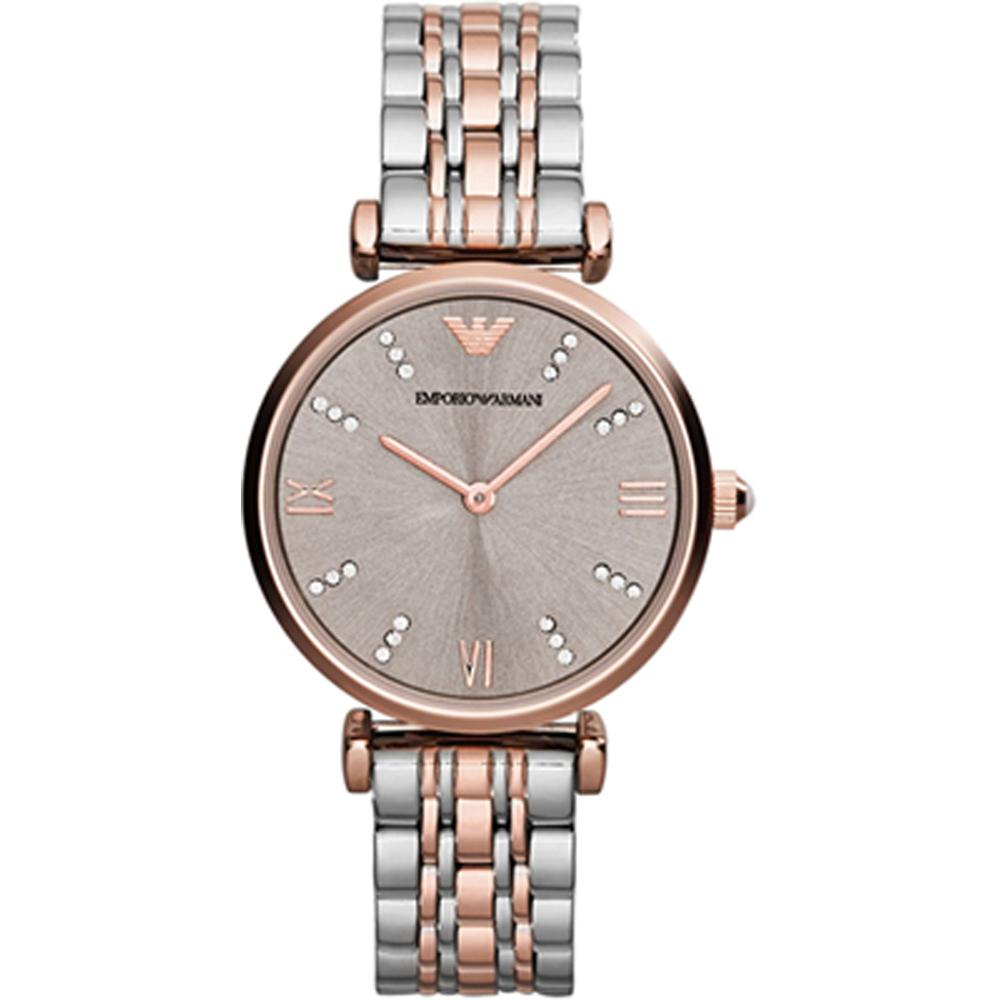 Emporio Armani Gianni T-Bar Beige Zweifarbig Rosé Metall Damen Quarz Uhr AR1840 beige