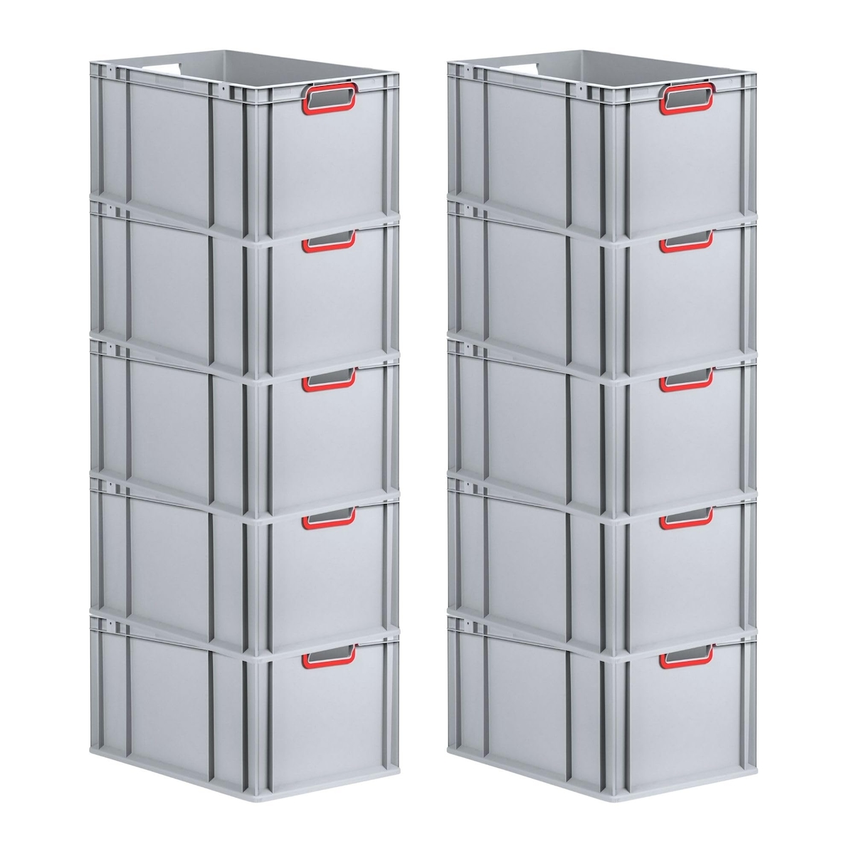 PROREGAL SparSet 10x Eurobox NextGen Color, HxBxT 32x40x60cm, 65 Liter, Griffe rot offen, Grau, Eurobehälter, Box, Transportbehälter