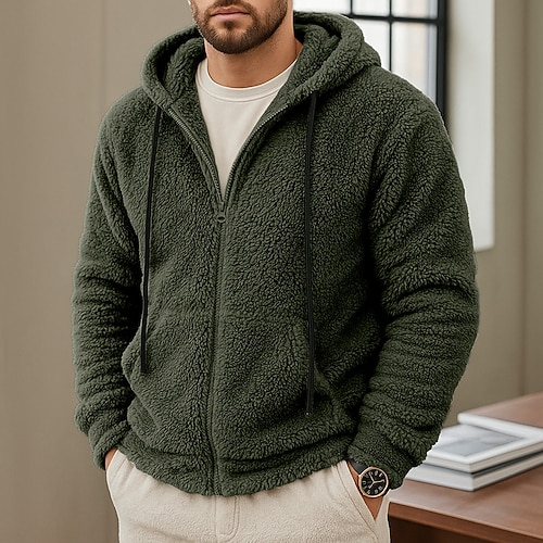 Per uomo Tinta unica Cowboy Pile Felpe con cappuccio Moda Cool Quotidiano Vintage Retrò Manica Lunga Con Cappuccio Ferie Abbigliamento casual alla moda Nero Marrone Verde militare Cerniera Tasca