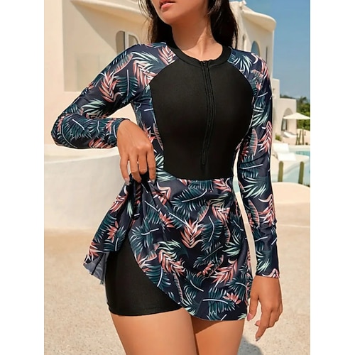 Costume da bagno da donna tankini a 2 pezzi con zip frontale vita alta controlla pancia abbigliamento da spiaggia per le vacanze costumi da bagno senza maniche a collo rotondo con maniche lunghe