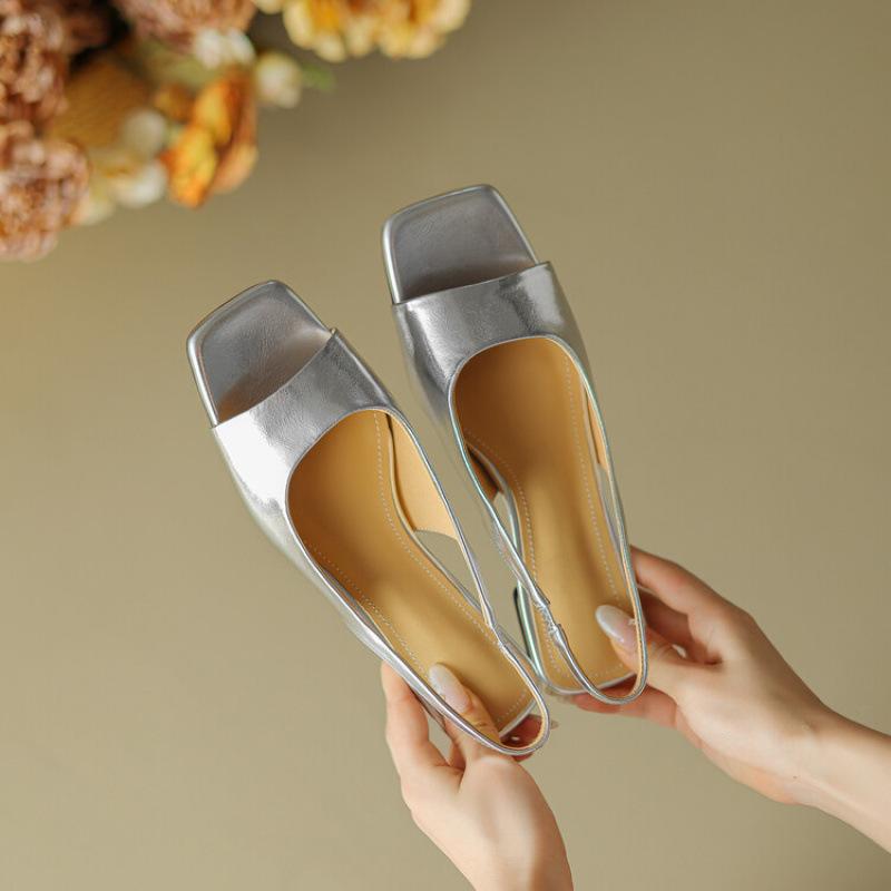 Sommar damläder stor storlek sandaler fyrkantig tå låg klack bekväma nya romerska sandaler senor av nötkreatur mjuk sula spänne bak tom cm svart