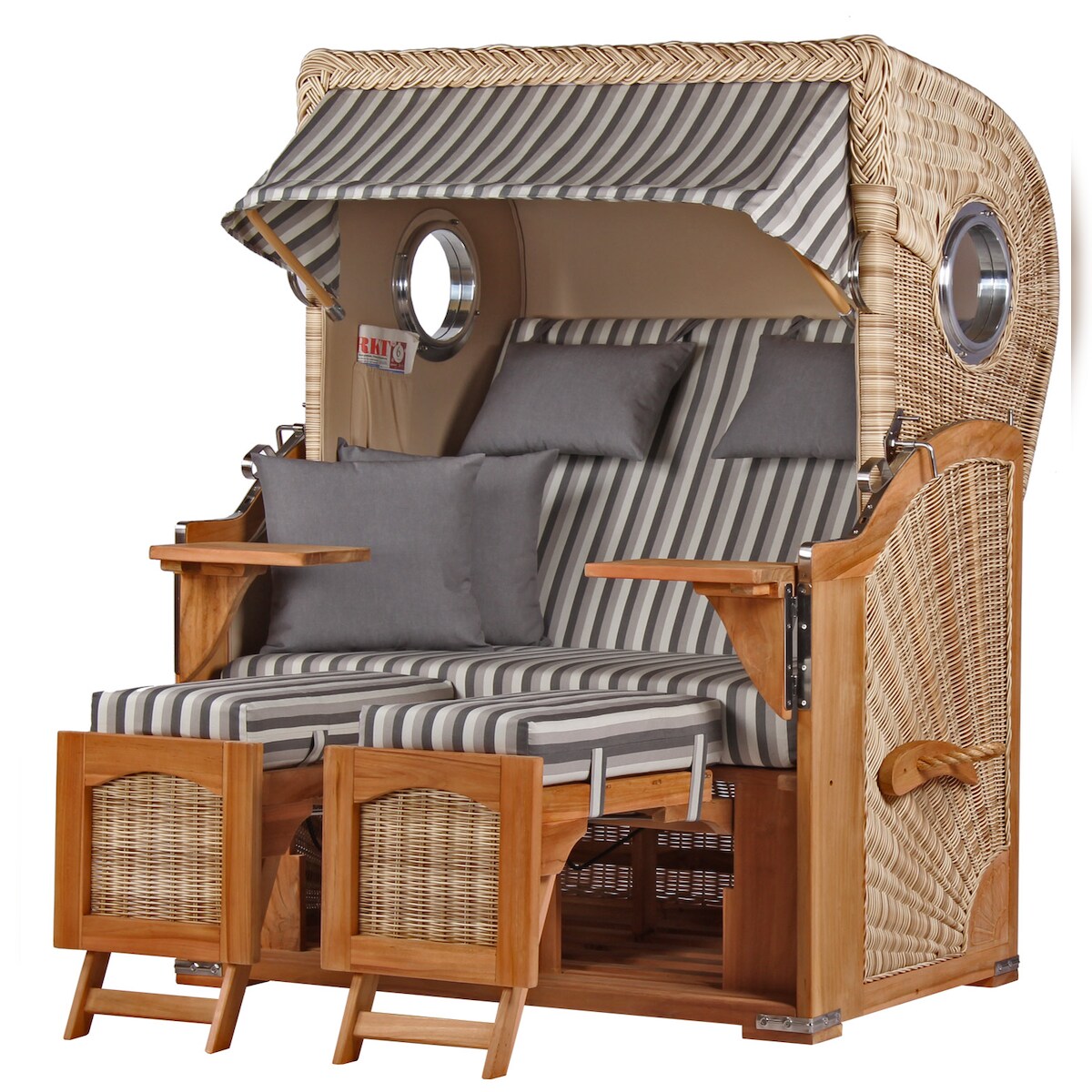 Mr. Deko Strandkorb - bene living - Schaalsee Teak - PE grau - Modell 520 - inkl. Liftersystem