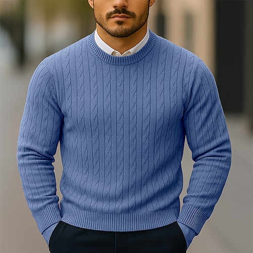 Per uomo Felpa Maglione A Coste Treccia Maglia Top Regolari Lavorato a maglia Slim Fit Semplice Girocollo Maglieria Contemporaneo Casuale Abbigliamento quotidiano Abbigliamento Autunno Tutte le