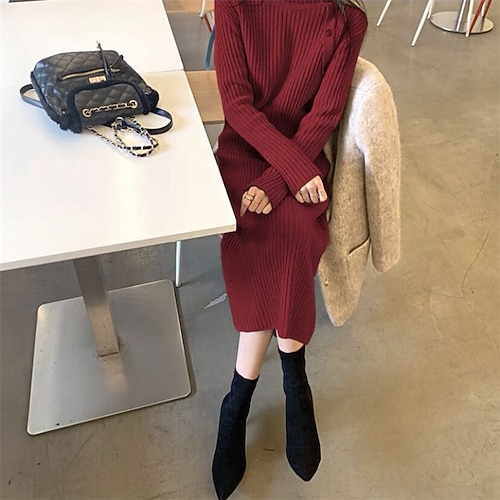 abito camicia da donna abito casual abito scampanato abito midi abito invernale da esterno moda quotidiana elegante colletto camicia polsini arrotolati abito alto basso manica lunga estate primavera