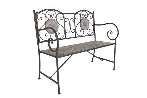 Lex Mosaik Bank Gartenbank Parkbank Sitzbank Keramik Gartenmöbel Eisenbank