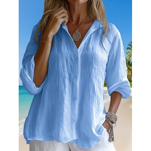 Per donna Camicia Estiva Camicia casual Camicia con Bottoni Blusa Bottoni Tinta unica Vacanza Quotidiano Elegante Manica Lunga Collo ripiegato Top Regolari Quotidiano Spiaggia Ferie Blu Rosa cipria