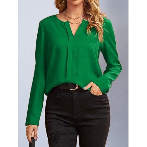 Per donna Camicia popover Camicia casual Blusa Arricciato Tinta unica Elegante Casual Manica Lunga Scollo a V Top Regolari Quotidiano All'aperto Ferie Nero Bianco Verde chiaro Rosa Azzurro Primavera