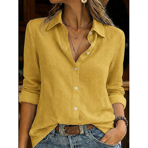 Camicia in Lino Falso per Donna Colore Solido Elegante Bohemia Giornaliera Maniche Lunghe Giornaliera Spiaggia Matrimonio Blu Bianco Giallo Rosa Estate Primavera
