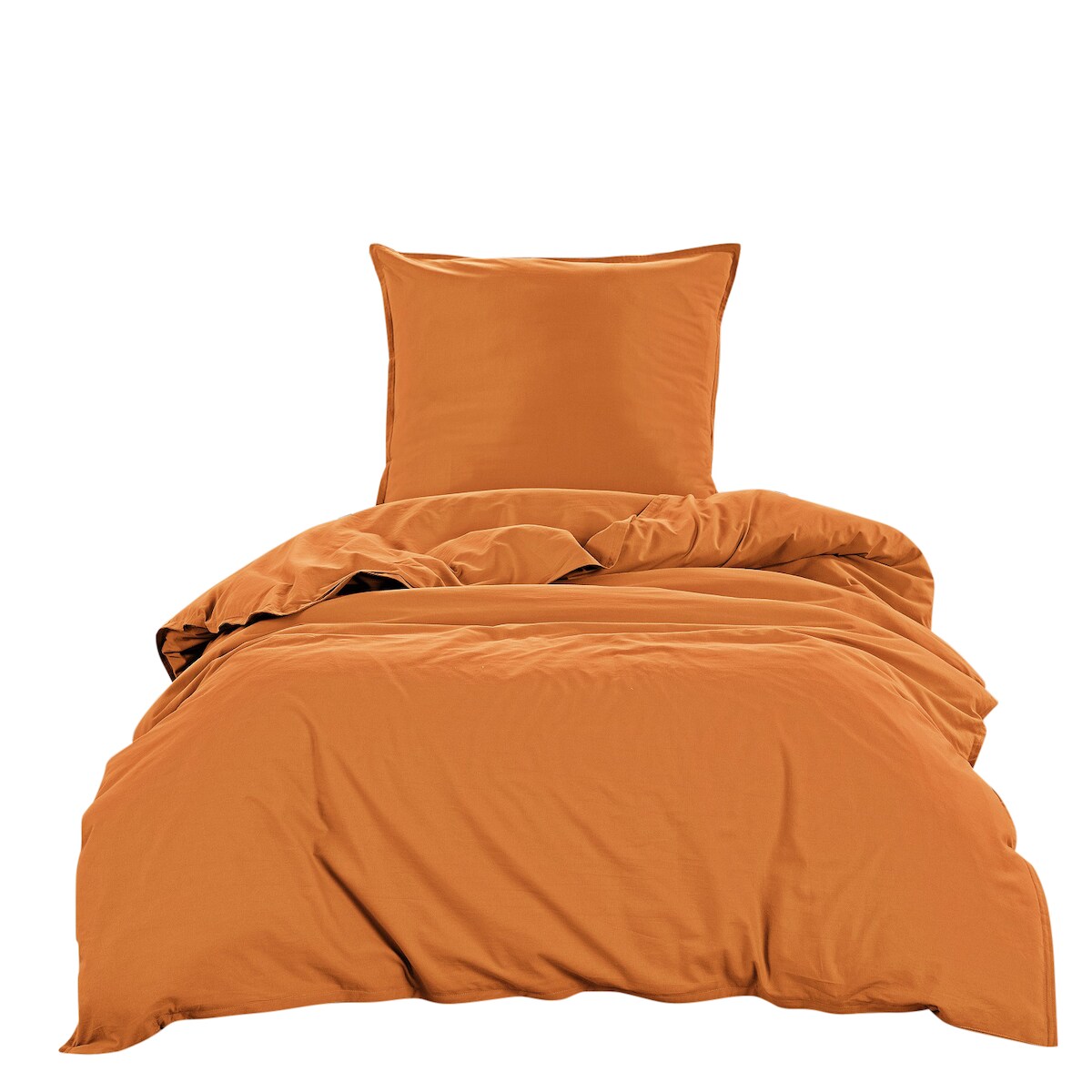 wometo Bettwäsche Renforce Stone-Washed 155x220 & 80x80 100% Baumwolle - curry currygelb OEKO-TEX modern Used-Look Leinen-Optik
