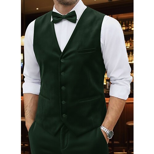Gilet da uomo, abiti da sposa, da festa, in velluto, con revers a V, nero, giallo, moda natalizia, tinta unita, vestibilità standard, 2 pezzi