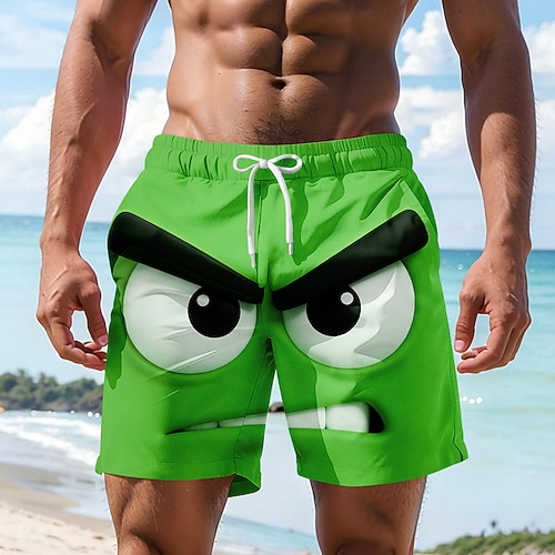 Per uomo Illusione ottica Fantasia Cartone 3D Faccia arrabbiata Costumi da bagno Pantaloncini da mare Pantaloncini da Surf Misura del girovita medio Hawaiano Divertente Vacanza al Mare Tasche