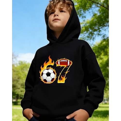 Unisex 3D Grafico Calcio Gergo divertente 67 Felpa con Cappuccio Maglione Manica Lunga Stampa 3D Primavera Autunno Sport Moda Streetwear Bambini 4-12 Anni Con cappuccio Casuale Quotidiano All'aperto