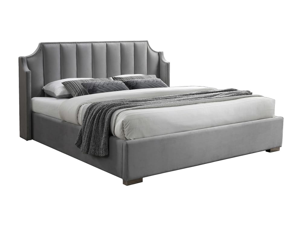 Lit coffre velours gris clair 140 x 190 cm