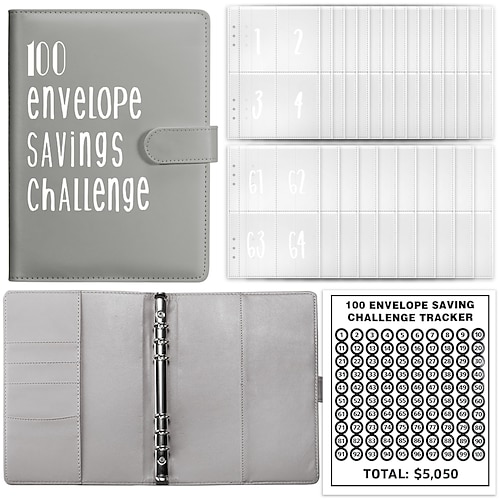 Raccoglitore per contanti da 100 buste con raccoglitore per buste per risparmio di denaro, busta per risparmio di denaro per l'ufficio scolastico