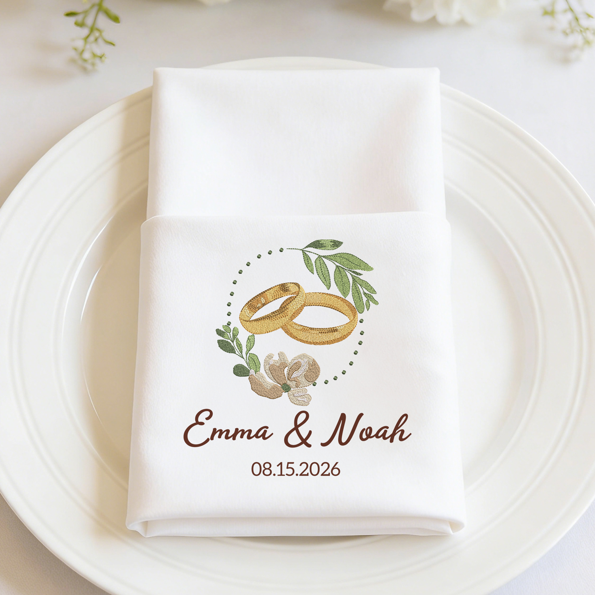 Tovagliolo personalizzato in cotone 100% con nome e data per la decorazione della tavola, regalo di nozze per la sposa.