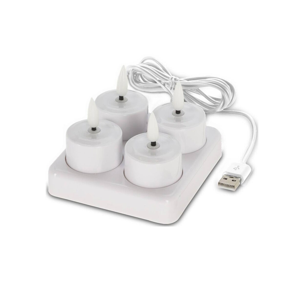 WellHome - 4er-Set flackernde LED-Kerzen mit Ladestation – warmes und gemütliches Licht für Zuhause