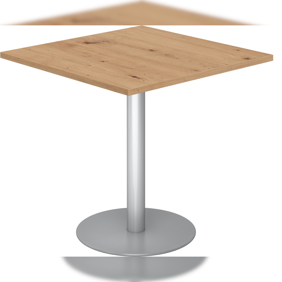 bümö Besprechungstisch, Esstisch klein, Tisch eckig 80x80 cm - kleiner Esstisch Asteiche, Rundtisch Esstisch 2 Personen mit Holz-Platte, Säule aus