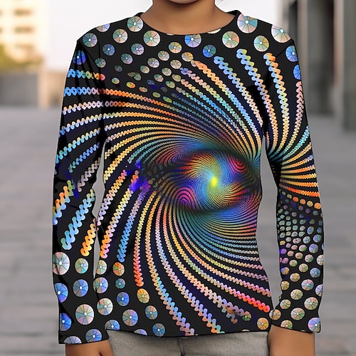 Maglietta da ragazzo con grafica 3D e illusione ottica, manica lunga, stampa 3D, estate, primavera, autunno, sport, moda, streetwear, poliestere, bambini 4-12 anni, casual, quotidiano, vestibilità regolare