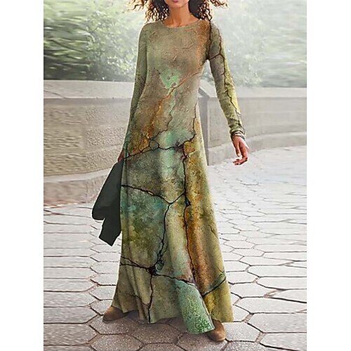 Per donna Abito Lungo Maxi Abito Vestito Casual Abito Estivo Abito Boho Elegante Casual Vacanza Quotidiano Data Vestibilità regolare Geometrico Manica 3/4 Girocollo Bianco Blu marino Verde Estate