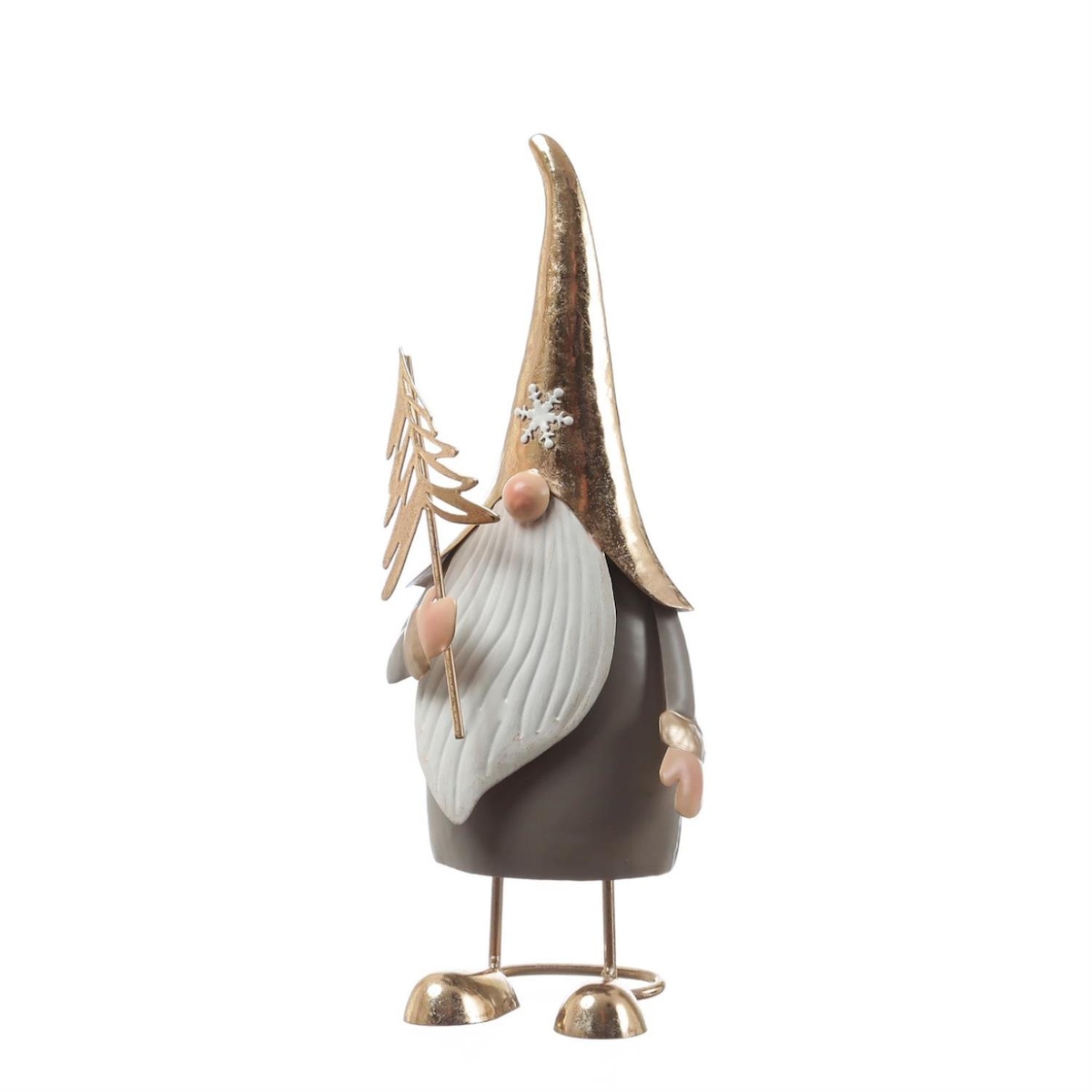 MARELIDA Weihnachtswichtel mit Baum Dekofigur aus Metall Zwerg Gnom 35cm