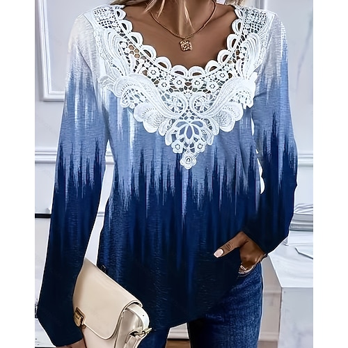 Per donna Blusa Floreale Grafico Elegante Classico Moderno Manica Lunga Scollo a V Top Regolari Quotidiano Ferie Uscire Pizzo Stampato Blu Verde Azzurro Primavera Autunno
