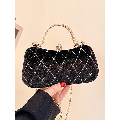 borsa da sera trapuntata in velluto da donna con dettagli di diamanti: elegante borsa a tracolla per feste di Natale, riunioni di festa e occasioni speciali