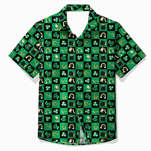 festa di san patrizio quadrifoglio camicia casual da uomo abbigliamento quotidiano per uscire nel fine settimana estate couverture maniche corte verde scuro, verde, beige s, m, l camicia in tessuto