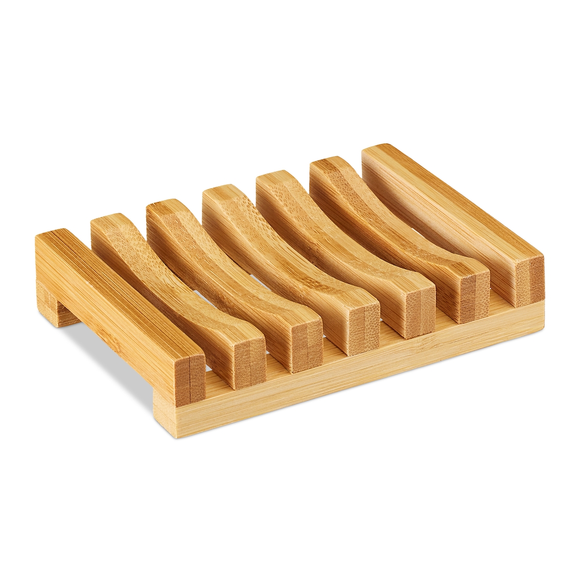 Relaxdays Seifenablage Bambus, mit Gitter, feuchtigkeitsresistent, Seifenhalter Stückseife, BxT 11,5 x 8,5 cm, natur