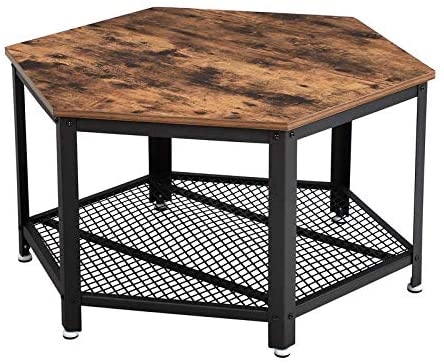 UAC Couchtisch 75 x 45 x 75 cm, sechseckig, mit Metallgestell und Gitterablage, Wohnzimmertisch, Kaffeetisch, Sofatisch, hexagonal stabil Holzoptik