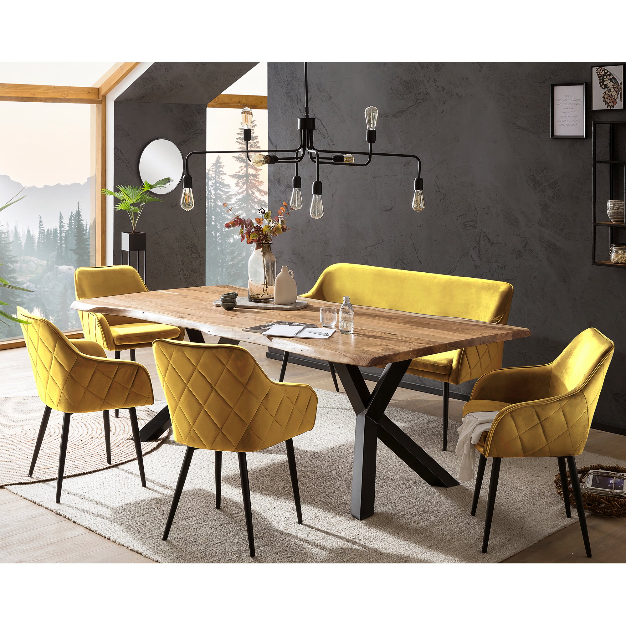 SalesFever »Saira-Freja-Finja« Esszimmergruppe Akazie Samt gelb – erhältlich in 3 Größen