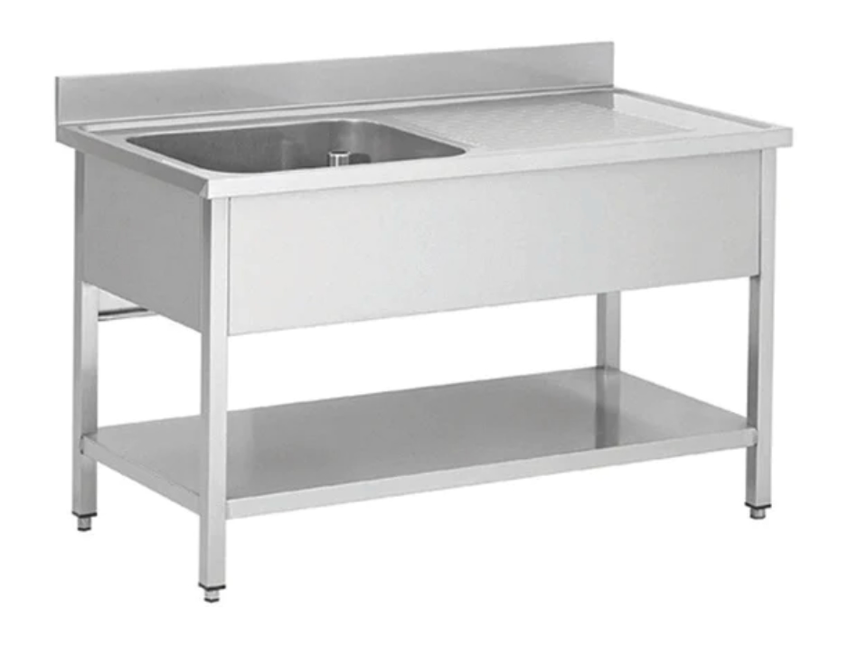 Chef tisch mit 1 becken rechts 1 regal - 2000x600x850 mm - 1D0206ED Eurast