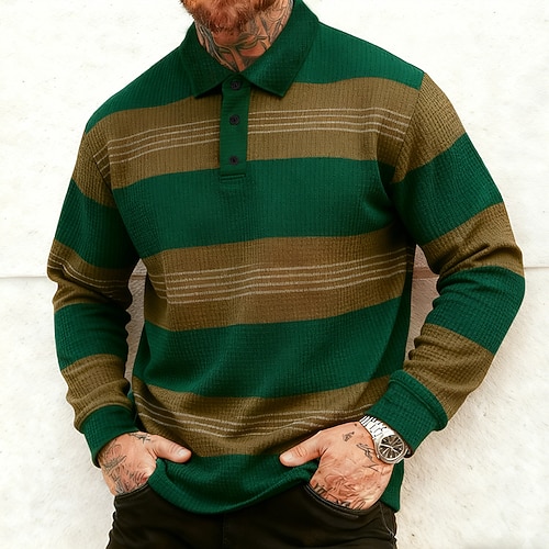 Per uomo Strisce orizzontali Magliette Polo a Nido d'Ape Polo da rugby Testurizzato Manica Lunga Magliette polo Bavero Abbigliamento Sportivo Casual Scuola Athleisure Abbigliamento quotidiano Stampa