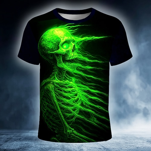 Per uomo Teschio Illusione ottica 3D Maglietta Manica Corta maglietta Stampa 3D Girocollo Camicia Esagerato Designer Orrore Feste Streetwear Ferie Blu Viola Arancione Estate Primavera Tutte le