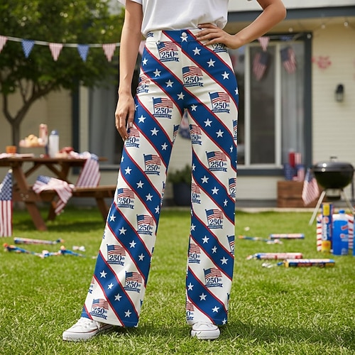 Americano 250 Retrò Vintage Anni '70 Pantaloni Pantaloni a gamba larga Hippie Disco Vita alta Costume Per donna Mascherata 4 Luglio Giorno dell'Indipendenza Semiquincentenario Adulti Pantaloni
