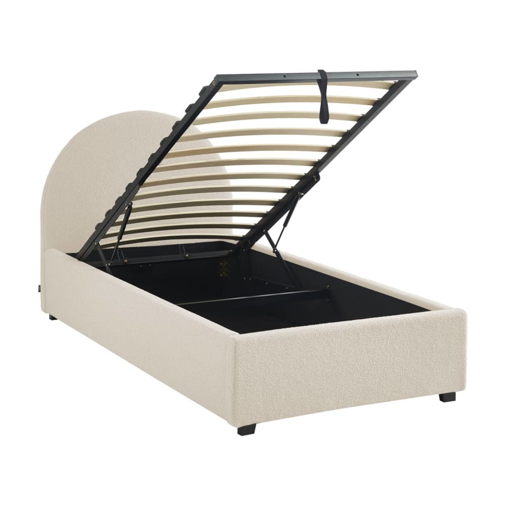 Letto a cassettone con testiera 140x200cm in bouclé grigio chiaro